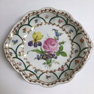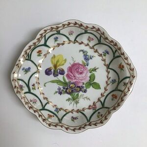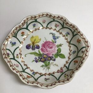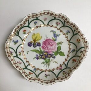 Vintage Heirloom by Toyo Floral Bowl Gold Trim Garden Bouquet Scalloped Leaves