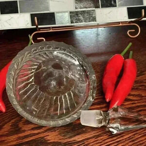 Vintage Heisey Clear Elegant Glass Cruet stopper thumbprint column triangular