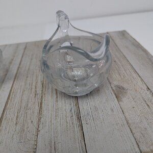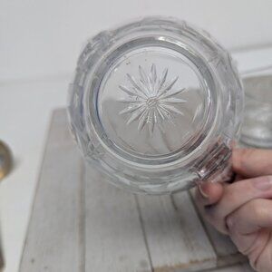 Enhance your collection with this exquisite Vintage Heisey Glass Creamer & Sugar set. Featuring a geometric leaf and berry wheel cut pattern, these elegant pieces add timeless charm to any table setting. Perfect for entertaining or display.