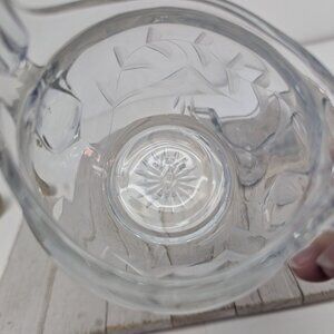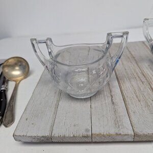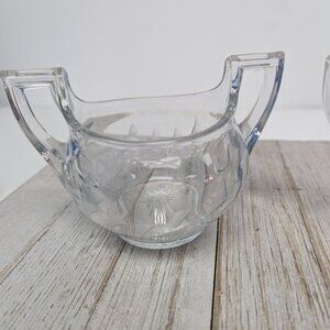 Vintage Heisey Glass Creamer & Sugar w/ Geometric Leaf & Berry Wheel Cut Pattern