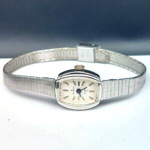 Vintage Helbros Quartz Womens Silver Tone Wristwatch New Battery Works