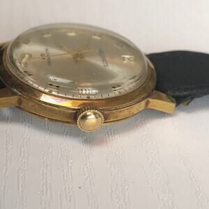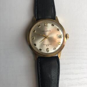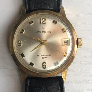 Vintage Helbros Self Winding Mens Wrist Watch. Stainless steel base, stainless steel bezel. Watch band is genuine leather, marked 20.