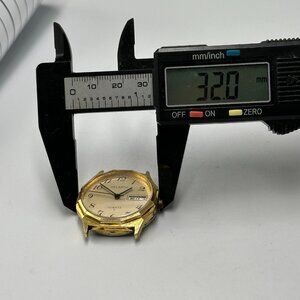 Vintage Helbros Watch Men Gold Tone Day Date Case Only No Band 32MM Working