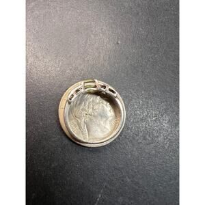 Genuine oval cut peridot gemstone prong set in authentic 925 sterling silver. Measures a size 6.5. As mentioned above , ring has considerable damage. The peridot stone mainly has lots of scratches and what looks like chemical damage from not removing jewelry or using rubber gloves with household cleaners. Just a guess. Total weight of ring is 2.46 grams. If this is a ring you plan on wearing a lot, I would suggest replacing the gemstone at some point.