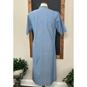 Vintage Helen Cerda 70s Hand Embroidered Chambray Shift Dress 14 Floral Midi