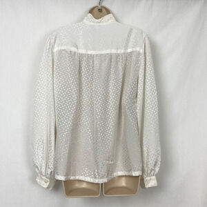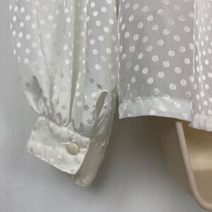 Vintage Helen Fabrikant Blouse Womens 12 White Satin Polka Dot Button Up Top