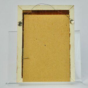Good condition for age. Frame measures 7.5 x 5.5." Frame is wooden and has some paint wear in some spots.