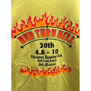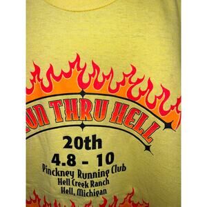 Vintage Hell Creek Shirt Run Thru Hell Ranch Michigan Yellow Tee Medium