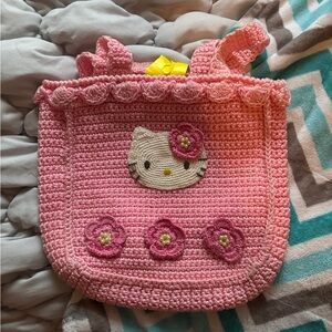 Vintage Hello Kitty pink Crochet Bag with Cute Cat Design sanrio new condition