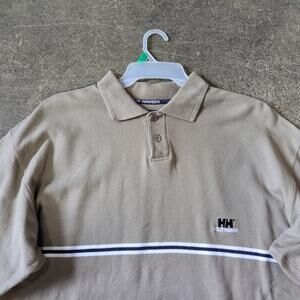 Vintage Helly Hansen Polo Shirt Mens L Tan 90s Oversized Heavyweight Preppy