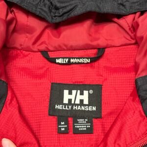 Vintage Helly Hansen Tech Red Black Mens Medium Full Zip Snap Windbreaker Hooded Jacket