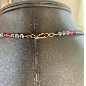 Vintage Hematite Cabochon and bead Necklace, hook clasp