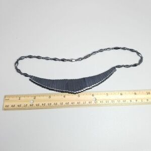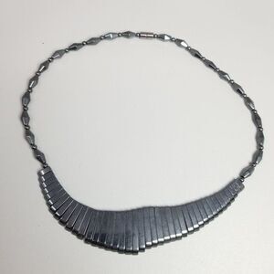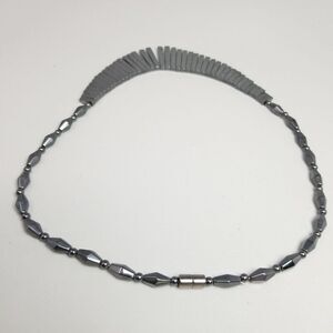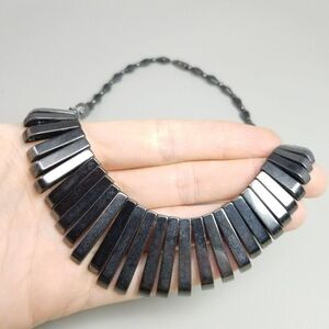 Vintage Hematite Dark Gray Stone Fringe Necklace, Retro 80s, Slightly Magnetic