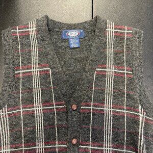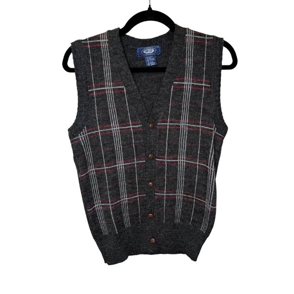 Vintage Hemingway Point Mens Wool Blend Button-Up Sweater Vest Plaid Size Small