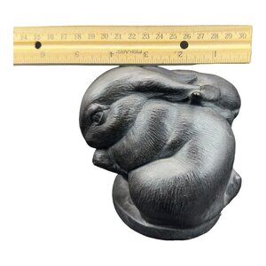 Vintage Hen Feathers Two Bunnies Collection 1985 Pottery Sculpture Figurine VTG. Measurements 5"Tall 5"Wide
