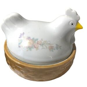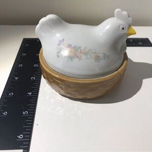 Vintage Hen On Nest Small Trinket Box Ceramic