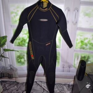 The Henderson brand is synonymous with quality and durability, making this wetsuit a valuable addition to any water sports enthusiast's collection. It is pre-owned and has been well-maintained, with no visible signs of wear and tear. Get ready to make a splash with this stylish and functional wetsuit!