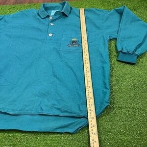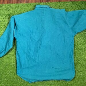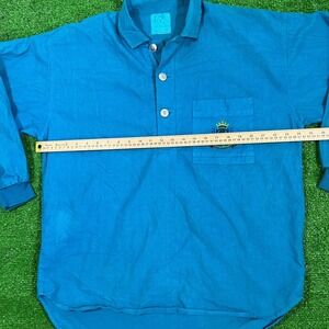 Elevate your casual wardrobe with this vintage Henley shirt from Code Bleu. Featuring a classic 80s theme, this polo shirt comes in a striking turquoise color that is perfect for adding a pop of color to your outfit. The shirt is designed for men and comes in a regular size type with a size of Med that runs big, making it a great fit for those who prefer a looser fit.