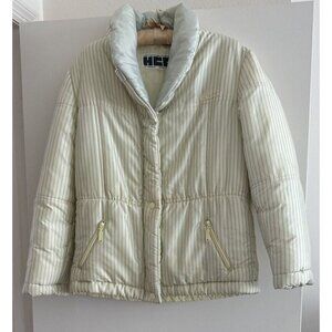 Vintage Henri Charles Colsenet Swiss White Striped Down Jacket Woman’s 38 VGUC