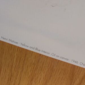 Vintage Henri Matisse Yellow and Blue Interior 1946 Print Lithograph - Printed In France, 1994 - Measures 20" x 27.5" - Excellent Condition, Very Faint Water Damage At Bottom Edge Of Print (Pictured)