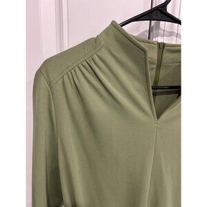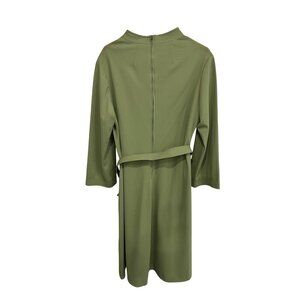 vintage, elegant, green midi dress, belted dress, professional wear, 3/4 sleeve dress, office attire, zipper closure dress, work dress, green dress, midi length dress, women's fashion, elegant dress, polyester dress