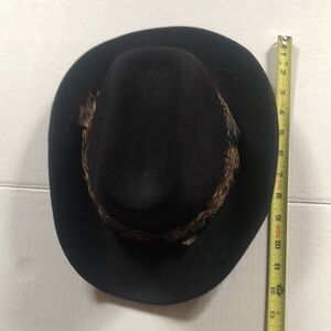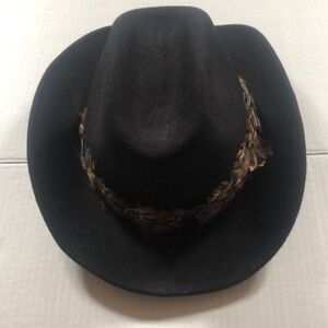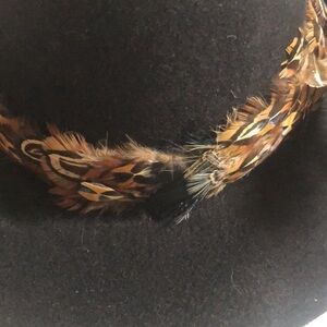 Good condition hat that accents an outfit some feathers are out of place as shown. Brim is a bit uneven as shown but can probably be reshaped. Great as a display piece or gift or to wear.