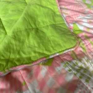 Her Majesty VTG Retro Flower Pink & Green Sleeping Bag With Zipper, Fabric Is In Great Condition No Rips, Very Light Stains That Blend Into The Design (shown in last photos) 64” x 32”