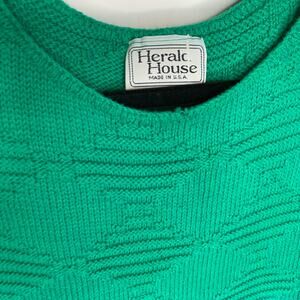 Vintage Herald House Green Cap Sleeve Sweater Textured Sz ? Small