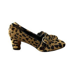 Vintage Herbert Levine Mod Spotted Hair Calf Pumps with Gold tone buckle