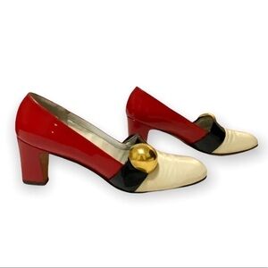 Vintage Herbert Levine Patent Color Block Mod Pump with Gold tone Ornament
