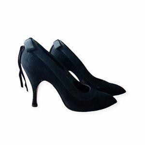 Vintage Herbert Levine Sailor Beware" Pumps with Bow at Back, Black Suede,