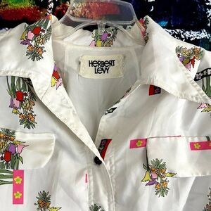 Vintage Herbert Levy Floral Print Button Down House Coat Dress XL