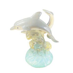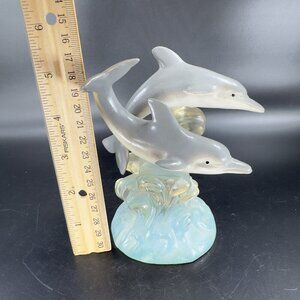 Vintage Herco Gifts Dolphins Swimming Figurine Decor Hard Plastic W Sticker VTG