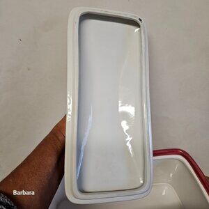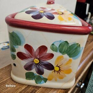 "Vintage Heritage Mint "Gatherings" Ceramic Bread Box. Colorful addition to any kitchen theme. Paint crazing due to age and use. Pre-owned. Inside is clear.