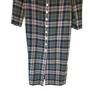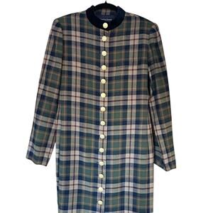 Vintage Heritage Tartan Plaid Maxi Dress Size 10 Velvet Collar Button Front