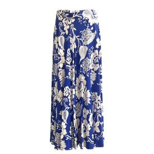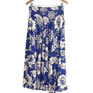 Beautiful vintage maxi skirt featuring a striking royal blue and ivory floral tropical print. Made in Taiwan from soft rayon with a breezy drape and timeless boho feel.