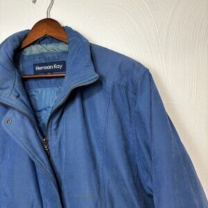 Vintage Herman Kay Coat Mid-Length Blue Long Sleeve Womens Full Zip 90s Size S