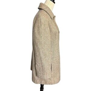 Vintage Herman Kay Wool Blend Pea Coat Herringbone Button Beige Neutral Lined Pocket Classic Timeless Jacket