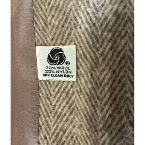 Vintage Herman Kay Wool Blend Pea Coat Herringbone Beige Lined Pocket