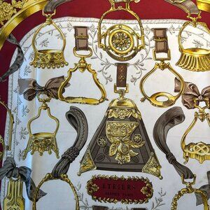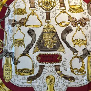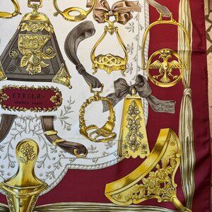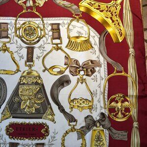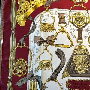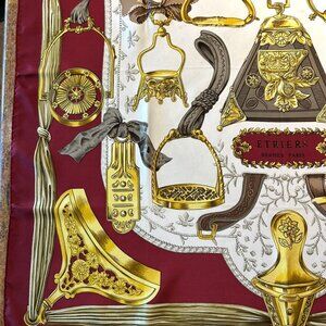 Vintage Hermes Etriers Silk Scarf Crimson and Gold by Françoise de la Perriere