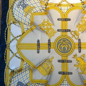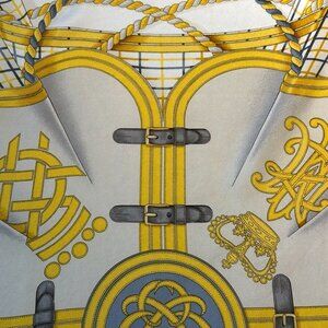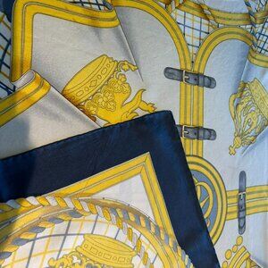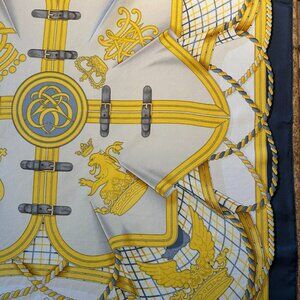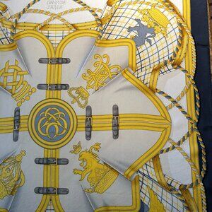 Vintage Hermes Grande Tenue Silk Scarf Blues and Golden Yellow