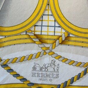 Vintage Hermes Grande Tenue Silk Scarf designed by Henri d'Origny.