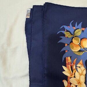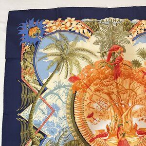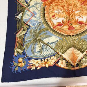 Vintage Hermes Paris Aloha '00 100% Silk Navy Blue Hawaiian Motif Signed Toutsy