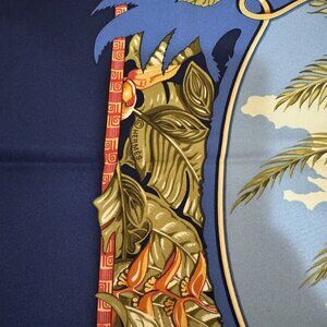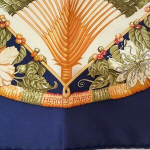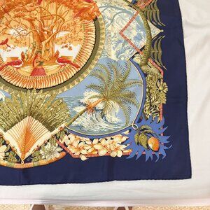 Vintage Hermes Paris Aloha '00 100% Silk Navy Blue Hawaiian Motif Signed Laurence "Toutsy" Bourthoumieux 2000