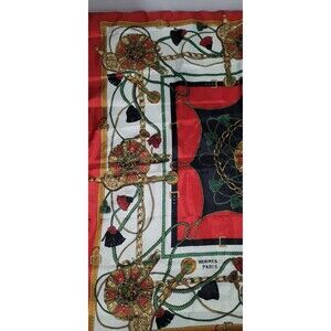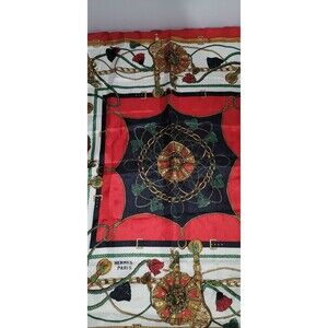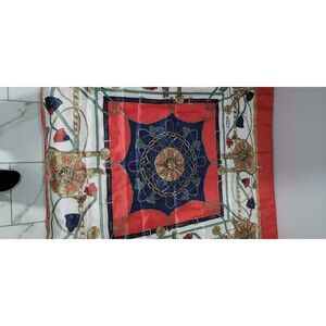 Vintage Hermes Paris Red Gold Blue White 100% Silk 34*34-100% Authentic Silk