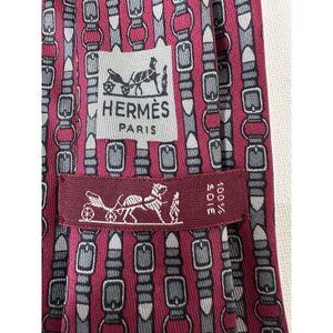 Vintage Hermes Red Buckle Print Men’s Neck Tie. No rips tears or staining.