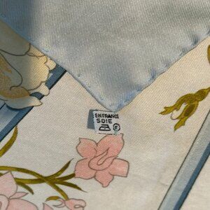 Vintage Hermes Romantique Silk Scarf by Maurice Tranchant Blue and Pink