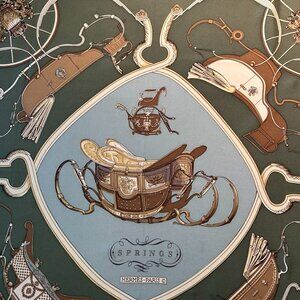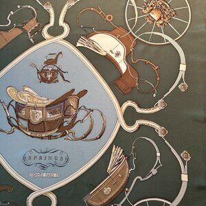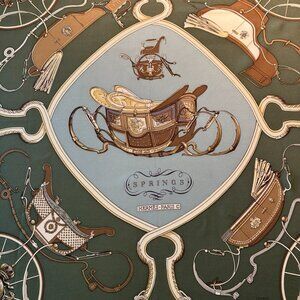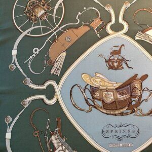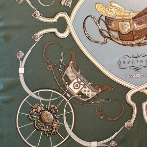 Vintage Hermes Springs Green Tones Silk Scarf designed by Phillipe Ledoux.