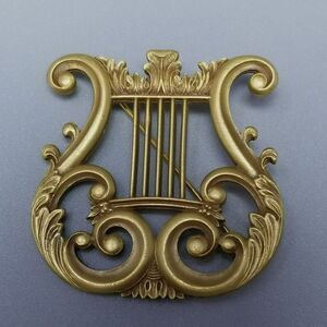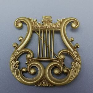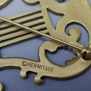 Vintage Hermitage Harp Satin Gold Tone Brooch, Signed Lapel Pin, Estate