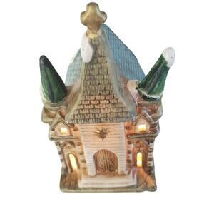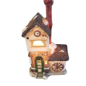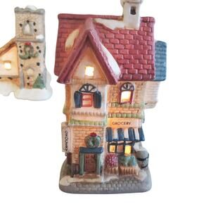 Vintage Hermitage Pottery Porcelain Christmas Village 4 Pc Light Up Small Shelf